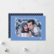 Theme Parties' modern Hanukkah photo card design features a light blue backdrop for your favourite holiday photo set in a modern geometric rectangle shape with two rounded corners. The reverse side is a Star of David pattern in white and navy blue. Change "Wish You Love & Light" to your favourite Hanukkah greeting. #Hanukkah #Holidays #HanukkahCards