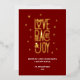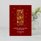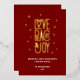 Send your warmest wishes with this bold and joyful holiday card featuring real gold foil accents and a festive modern design. Perfect for families, couples, or individuals, this card showcases a striking red background with the phrase “Love, Peace & Joy” beautifully pressed in genuine shimmering foil, surrounded by playful gold stars. The radiant metallic finish adds a luxurious touch that catches the light and brings holiday cheer to every recipient. Personalize the lower text with your family name, year, or custom message for a heartfelt greeting that stands out from the rest. Ideal for mailing to loved ones, friends, and coworkers, this premium foil holiday card blends contemporary style with classic holiday sentiments, making it a memorable keepsake that celebrates the season in sparkling elegance.