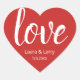 Modern LOVE in red heart. White and red colours. Use them for your invitation envelopes, favours or welcome bags. Edit Bride and Groom's names and date or delete. Wedding, Engagement, Anniversary. See more in "Wedding STICKERS & LABELS"