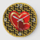 Trendy, stylish and modern clock features personalised name, red / golden love hearts on black / yellow floral background and golden frame.