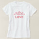 Modern LOVE text and flower vector in coral pink T-Shirt. Text can be personalised. Love is our essence that is all the best that we can be.