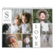 Modern Love White and Grey Colour Block Family Photo Collage Christmas & New Year Monthly Calendar - with personalised Love Word, family last name, year, and initial letter, all arranged in an elegant grid layout. This modern and sleek design displays 6 of your own pictures beautifully on the cover, 6 more on the back, and 1 large photo for each month. 24 Pictures in total. Available in several colorways to match any room decor. Makes a great holiday or Christmas keepsake Gift for grandparents, parents, family, friends, and loved ones. Easily customise it with your photographs and personalised text.