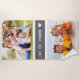 A modern beach towel features 2 photos with the text "love you, grandma ♥️" overlaying thick grey stripe.