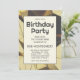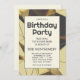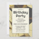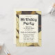 Custom party invitation for any occasion featuring modern gold low-poly geometric background, brown typography, and beige background. Fully editable to personalise with your party details. Several sizes and options available.