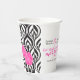Personalise these modern luxe leaf and two pink carnations graphic wedding party paper cups with your own couple's wedding details. © Original art and design by Sarah Trett for www.mylittleedenweddings.com