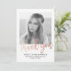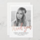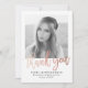 Say thank you to your friends and family with a chic, modern graduation thank you photo card. The design features a trendy script font with a faux rose gold foil style and placeholders for an image and custom text.