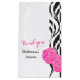 Show your appreciation to your bridesmaids or other wedding attendants with this thank you wedding favour gift bag. Perfect to fill with a special gift or gifts to show your appreciation. Fashionable modern black and white luxe design with a bold splash of hot pink carnations. Matches modern luxe carnation wedding set. Customise / personalise these gift favour bags with your attendants title, name and a personal message or thanks. Currently reads Thank you Flower Girl Arianna. Unique art and design by Sarah Trett.