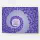 This envelope design radiates elegance with its ornate purple damask floral frame gracefully flowing around the centre. The intricate swirls, leaves, and ornamental flourishes in deep purple stand out beautifully against the dark background, giving the design a regal and artistic appeal. At the centre, the recipient’s name and address are highlighted in matching purple, blending seamlessly into the luxurious theme. The rich purple palette adds sophistication and charm, making this design ideal for weddings, anniversaries, gala dinners, and other formal celebrations.