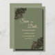 Announce your special day with a touch of timeless elegance and modern luxury. This sage green Save the Date card features a sophisticated design that beautifully blends classic grace with contemporary flair. The card showcases a serene sage green background, highlighted by luxurious faux metallic gold floral blocks that add a hint of opulence.