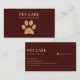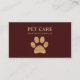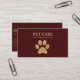 Glittery golden paw against maroon red background modern business card for pet services.