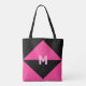 Modern magenta and black triangles Tote Bag. M letter can be personalised.