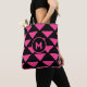 Modern magenta and black trianglePattern Tote Bag. M letter can be personalised.