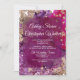 This modern wedding invitation features a rich magenta and plum abstract design accented with shimmering gold textures for a bold, elegant look. The layered alcohol-ink style background creates depth and movement, while refined script typography adds a soft, romantic contrast. The coordinating RSVP card includes a clean QR code layout, allowing guests to easily respond online and access additional wedding details.