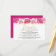 Modern magenta tropical leaves wedding details Enclosure Card. This lovely design features leaves of Split Leaf Philodendron (Monstera deliciosa) or Swiss Cheese Plant and palm leaves in fuchsia pink with gold outline. The back is covered with a gold polka dot pattern.
