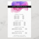 Vibrant watercolor flyer card design displays your services, price list or business information beautifully. Design features a watercolor inkblot logo in fuchsia pink and purple, framing your name and/or business name. Includes four customisable headings and body text fields, and space for your business contact information along the bottom. To adjust layout, enter your text and then use the Customise function to change positioning and font sizes.