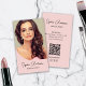 Create a professional and modern business card with a custom photo on the front and personalised details, plus a scannable QR code on the back for easy networking, and editable social media icons. Easily adjust fonts, colours, background, and layout to perfectly match your style. Ideal for makeup artist, hair stylist, Beauty Salon, and businesses looking to offer a thoughtful and professional presentation!