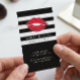 Modern Makeup Red Lips - Chic Black White Stripes Business Card