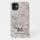 Protect your iphone with this white marble with black and cream phone case. It's modern deep grey font with your first initial and name adds the finishing touch.