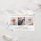Modern marble celebration of life memorial invitation with photos is a stylish and meaningful way to honour the memory of a loved one. This custom funeral or memorial service invitation features a sophisticated white marble background accented with subtle veining, giving the design a timeless yet modern aesthetic. The front of the card highlights three customisable photo spaces arranged in a clean grid, framed by elegant gold typography that reads “A Celebration of Life.” Below the photos, space is provided for the name and dates, ensuring a polished presentation of essential details. The reverse side carries through the marble background and gold accents with a dignified pineapple illustration symbolising warmth, hospitality, and remembrance. Customisable text provides space for full service details, including location, date, and donation information, ensuring everything is clearly presented in a stylish format. The design strikes a balance between contemporary minimalism and traditional elegance, making it versatile for different themes and families. Perfect for mailing to family and friends or distributing at services, this marble memorial invitation doubles as both a functional announcement and a keepsake to treasure. Its clean lines, modern typography, and marble backdrop capture the current modern classic and transitional design trends, appealing to families who value both tradition and contemporary style. A truly refined way to celebrate a life well lived, this personalised invitation ensures the memory of a loved one is honoured with grace.