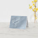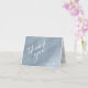 An abstract background reminiscent of glitter-veined marble in shades of dusty blue through steel blue and white is the backdrop for elegant script text and modern design layouts in the pieces of this beautiful wedding suite. The wedding 'thank you' card shown here features a dusty blue watercolor exterior and marble interior. Easily add your own 'thank you' message, names and wedding date using the provided template. Search ID816 to see other pieces and colour choices for this set.