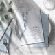 An abstract background reminiscent of glitter-veined marble in shades of dusty blue through steel blue and white is the backdrop for elegant script text and modern design layouts in the pieces of this beautiful wedding suite. The wedding menu shown here features right-aligned text bordered by marble. Easily add your own names, wedding date and menu selections using the provided template. Search ID816 to see other pieces and colour choices for this set.