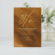 An abstract background reminiscent of glitter-veined marble in shades of gold is the backdrop for elegant script text and modern design layouts in the pieces of this beautiful wedding suite. The wedding RSVP card shown here features unique y/n script text with your names, wedding date on a gold and russet background with a coordinating marble effect on the reverse. Search ID816 to see other pieces and colour choices for this set.