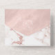 An abstract background reminiscent of glitter-veined marble in shades of rose gold is the backdrop for elegant script text and modern design layouts in the pieces of this beautiful wedding suite. The combination wedding invitation and postcard-style RSVP shown here features an elegant marble background and matching watercolor texture on the reverse. Search ID816 to see other pieces and colour choices for this set.