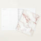 An abstract background reminiscent of glitter-veined marble in shades of rose gold is the backdrop for elegant script text and modern design layouts in the pieces of this beautiful wedding suite. The wedding planner shown here features centred text bordered by elegant marble. Easily add your own title, names and wedding date using the provided template. Search ID816 to see other pieces and colour choices for this set.