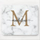 Modern Marble Gold Girly Script Monogram Mouse Pad