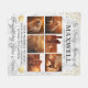 Modern dog fleece blanket featuring a elegant marble background, 6 precious pictures of your beloved pet, gold heart pawprints & glitter, the text "in loving memory of", your dogs name, birth/death dates, and the sympathy quote "your presence we miss, your memory we treasure, loving you always, forgetting you never".