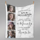 Elegant tribute keepsake blanket featuring a stylish marble effect background, a 4 photo collage of the person your remembering, a sympathy quote, and a memorial template that is easy to personalize. This modern photo collage blanket is easy to customize, and is the perfect gift for you, your family, or friends to honor those special people who are no longer with us.