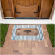 This custom doormat features seashells and boat wheels surrounding four lines of custom text in elegant black letters on a striped blue and white striped pattern. Customise with your information or make it a gift to remember.