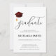 Modern and simple high school graduation invitation with an illustration of a maroon graduation cap and elegant typography. Illustrated and designed by Patricia Alvarez.