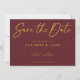 Modern maroon background and golden handwritten style wedding Save the Date invitation card. This design features large calligraphy style font that you can change its colour. You can also customise all details and colours on this Save the Date design.