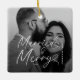 Modern Married and Merry Newlywed Script Christmas Ceramic Ornament