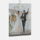 Commemorate your marriage this year with this couples photo glass ornament. Featuring the text 'MARRIED & MERRY' in white typography framing a picture of your choice, cute white heart spacers, name's and year.