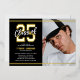 Masculine graduation party invitations featuring a stylish black background that can be changed to fit your personal taste or match your school colours, with a bold real foil gold "25" representing the class year and symbolising the start of a new chapter in life. Plus sleek gold lines running across the top and bottom add a touch of modernity, giving them a sleek and sophisticated look that is sure to catch the eye of anyone who receives them.