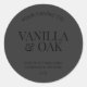 Modern candle label. Create your own personalised product label for cosmetics and candles featuring simple minimalist typography design in matte black colour.