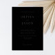 Modern wedding invitation with minimal typography design in matte black colour. Easily personalise with all of your information for custom wedding invitations,