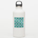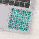 This design features a mesmerizing, intricate geometric lattice pattern reminiscent of Moroccan tiles, modern kaleidoscopes, or Mediterranean mosaics. The vibrant color palette combines refreshing Aqua/Teal, Coral Pink/Salmon, deep Navy Blue/Black, and touches of rich Red, creating a bold, lively, and sophisticated look.