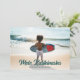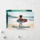 Looking for beach themed Christmas cards to send to family and friends? These photo cards are perfect! They feature a full bleed horizontal photo template and modern typography reading, "Mele Kalikimaka." There is a white gradient overlay towards the bottom which allows the text to stand out. It can be adjusted as needed in the customisation tool. Text colour can also be customised, if desired. The back of the card features a colourful palm trees painting.