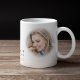 Create your own memorial coffee mug to give as a sympathy gift, featuring 2 photos of your loved one, (from different times in their life) template text that reads "In loving memory, your presence we miss, your memory we treasure, loving you always, forgetting you never.", their name, dates and a personal message. The text style, size and colour can be changed by clicking on the customise further link after personalising.