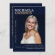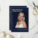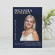 This elegant memorial program features a sophisticated navy blue and gold design, creating a timeless tribute to a beloved individual. The front showcases a cherished photograph framed by classic serif typography, with the name and life dates displayed prominently for a heartfelt touch. The customisable phrase "Forever in our hearts" adds a meaningful sentiment, followed by a personalised description honouring their legacy. The back of the program presents a well-organised order of service in a refined layout, making it easy for guests to follow along. The combination of a modern yet classic aesthetic ensures this funeral program serves as a beautiful keepsake, celebrating a life well lived and remembered with love.