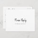 This modern menu choice rsvp postcard is perfect for a rustic wedding. The simple and elegant design features classic and fancy script typography in black and white.