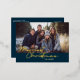 Modern Merriest Christmas 1 Photo Navy Plaid Foil Holiday Postcard