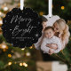 Modern Merry and Bright Black Holiday Photo Tree Decoration Card