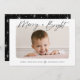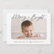 Cute, modern holiday photo card featuring the phrase "Merry & Bright" in a black hand-lettered script. Your horizontal photo is displayed with a white rough edge border. Personalise the front of the card by adding a custom greeting and your family name. The card reverses to display a black background with a white sparkling star pattern.