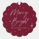 Celebrate the season with this modern holiday photo ornament card, featuring “Merry and Bright” in hand-lettered script surrounded by a border of white stars on a rich burgundy background. Personalise the front with your name and the year for a festive and custom touch. The back of the ornament card features your favourite family photo, making it a heartfelt keepsake and a perfect way to share holiday cheer with friends and loved ones.