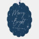 Modern Merry and Bright Navy Holiday Photo Tree Decoration Card