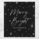 Modern holiday wine labels featuring "Merry and Bright" in a white hand-lettered script encircled by a border of stars with a black background. Personalise the merry and bright wine labels by adding your family name and the year below.